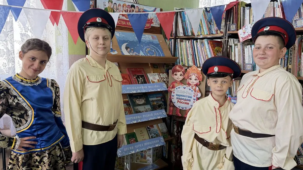 Наша библиотека выбрала для детей формат «Народы России», а центральной темой стало Донское казачество. Ребята совершили настоящее путешествие в мир самобытной культуры донских степей - от былинного эпоса до кулинарных секретов. Программа началась с громких чтений старинных казачьих преданий и песен. Дети узнали о подвигах атаманов, о верности родной земле и военном товариществе. Звучали подлинные напевы под аккомпанемент балалайки и домры - тишина в зале показывала, как сильно юных слушателей тронула народная мудрость.